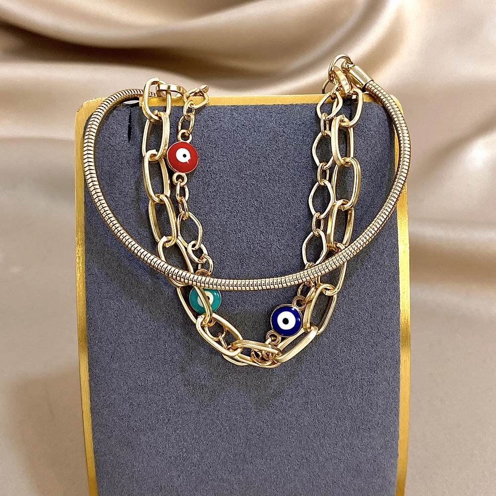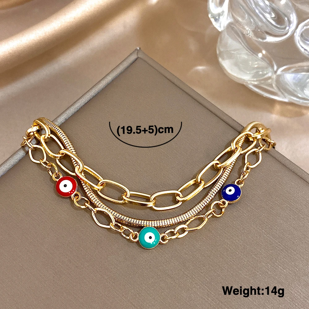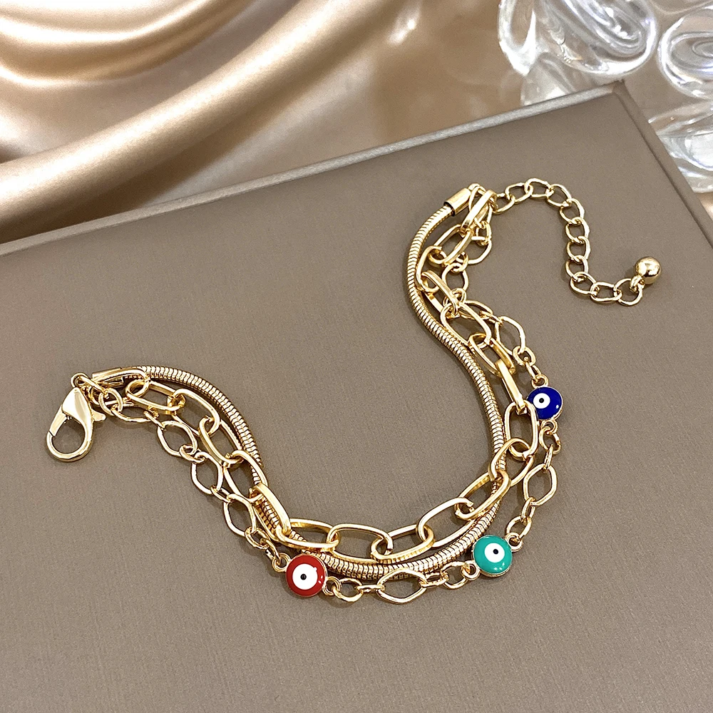 Chic Colorful Devil's Eye Multilayer Chain Wrap Bracelet Fashion Gold Color Geometric Circle Link Bracelets Jewelry Gifts